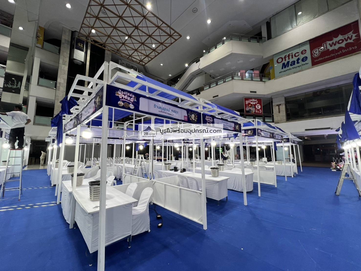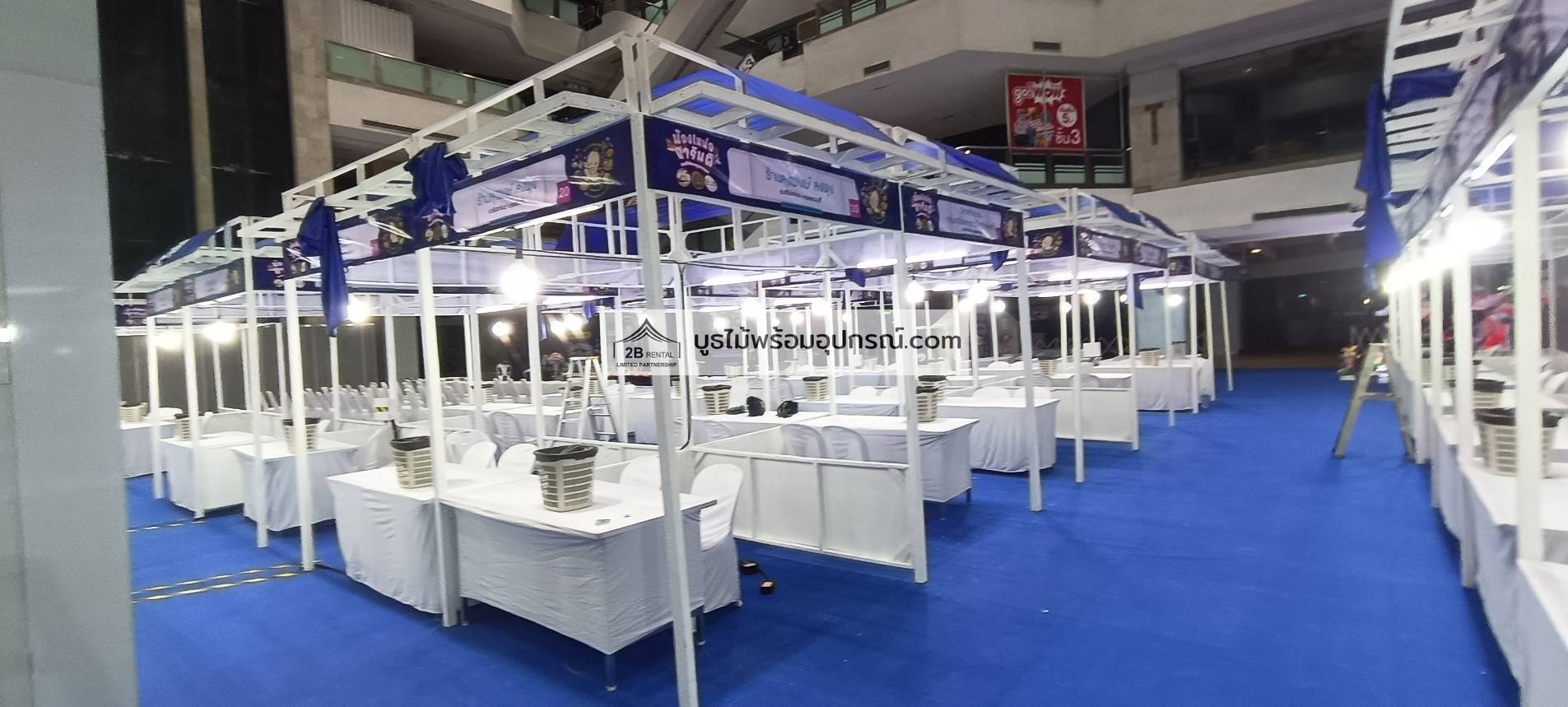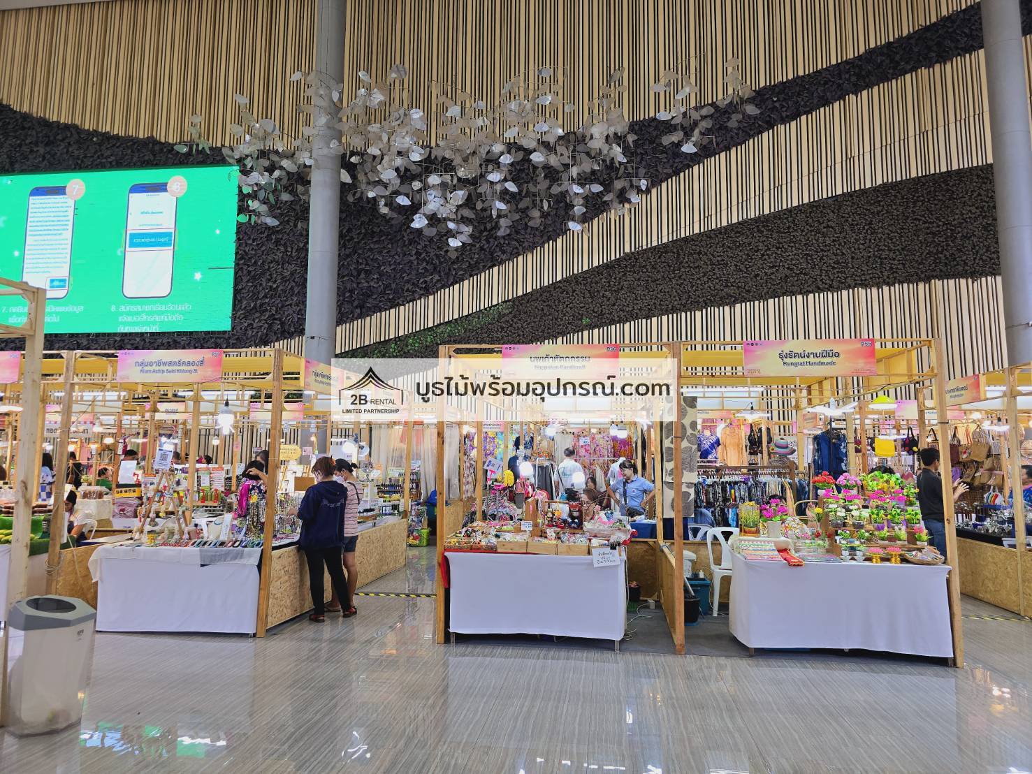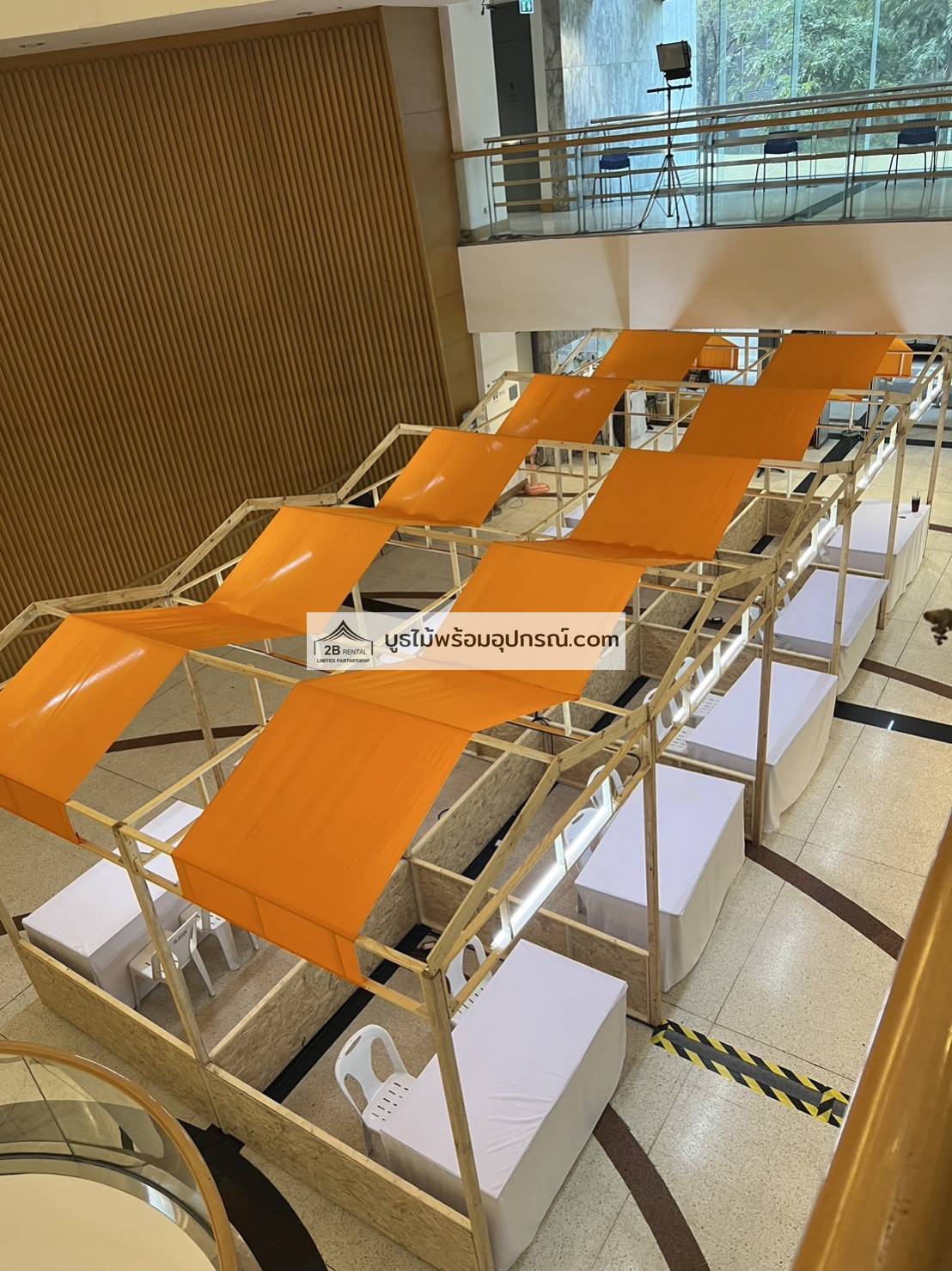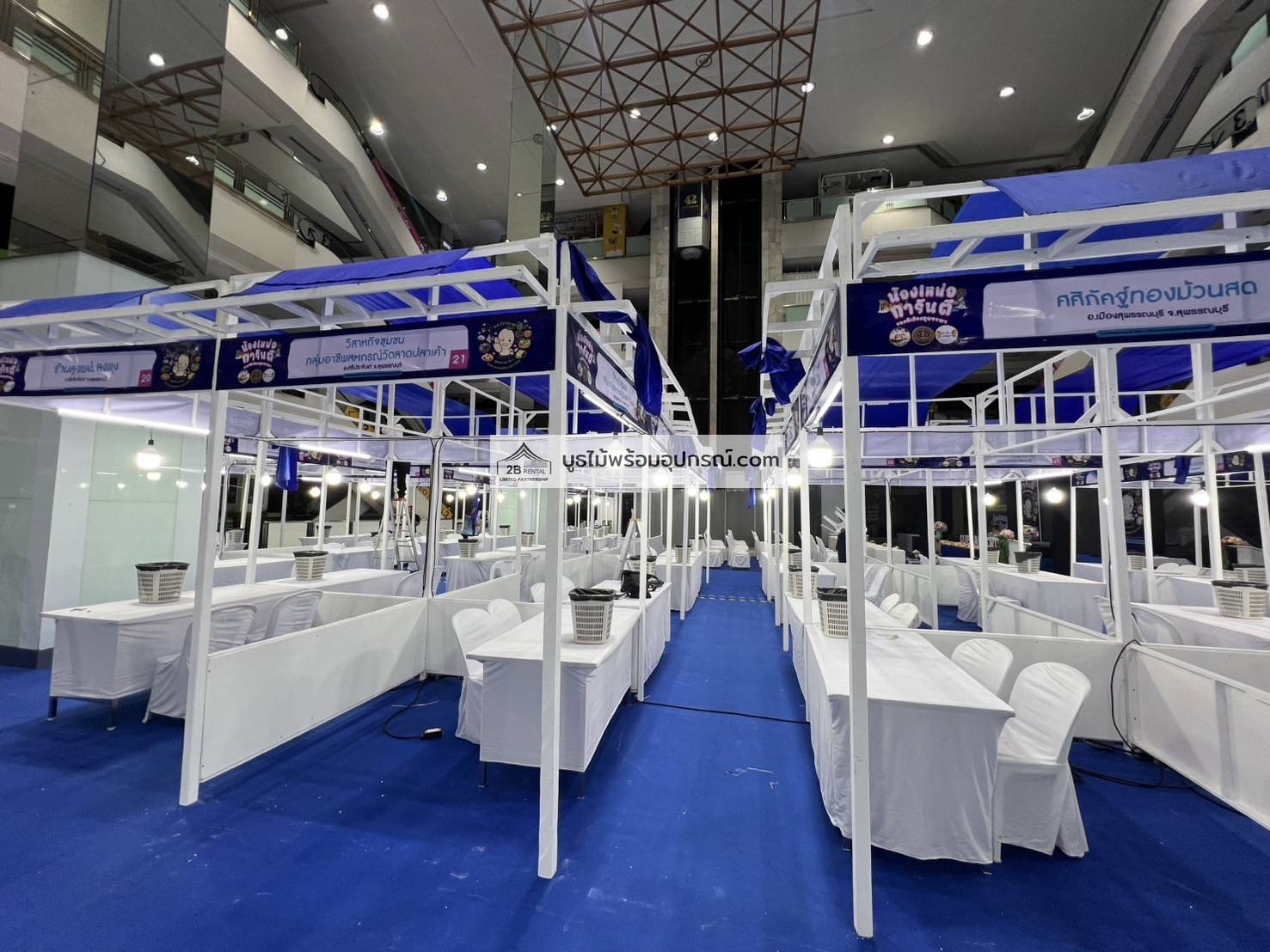 - บูธไม้ บูธพาร์ทิชั่นทุกขนาด พร้อมอุปกรณ์ภายในบูธ เช่นปลั๊กไฟ ไฟส่องสว่าง โต๊ะ เก้าอี้ ถังขยะฯลฯ
