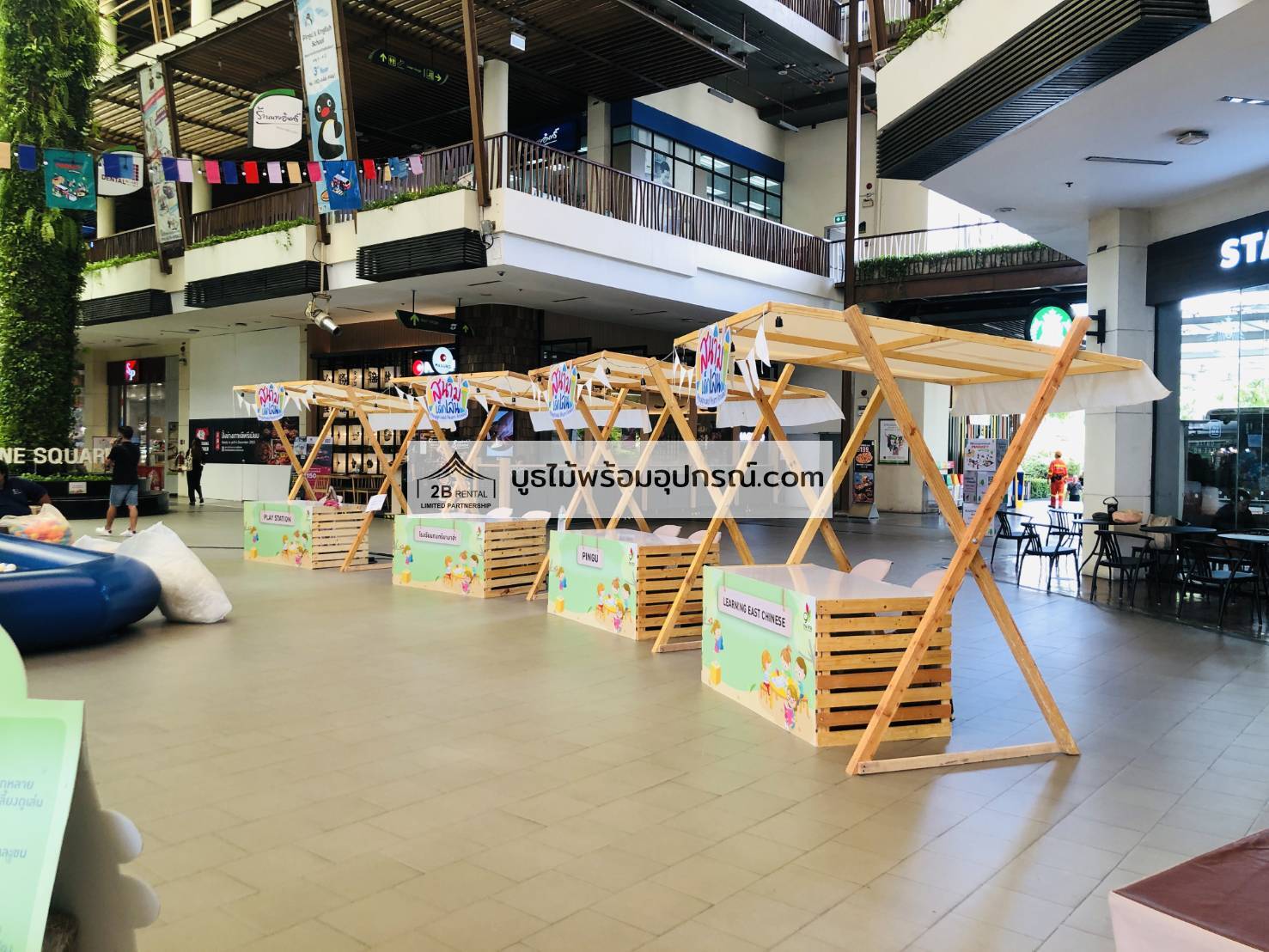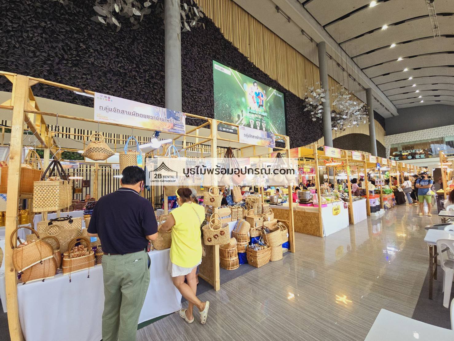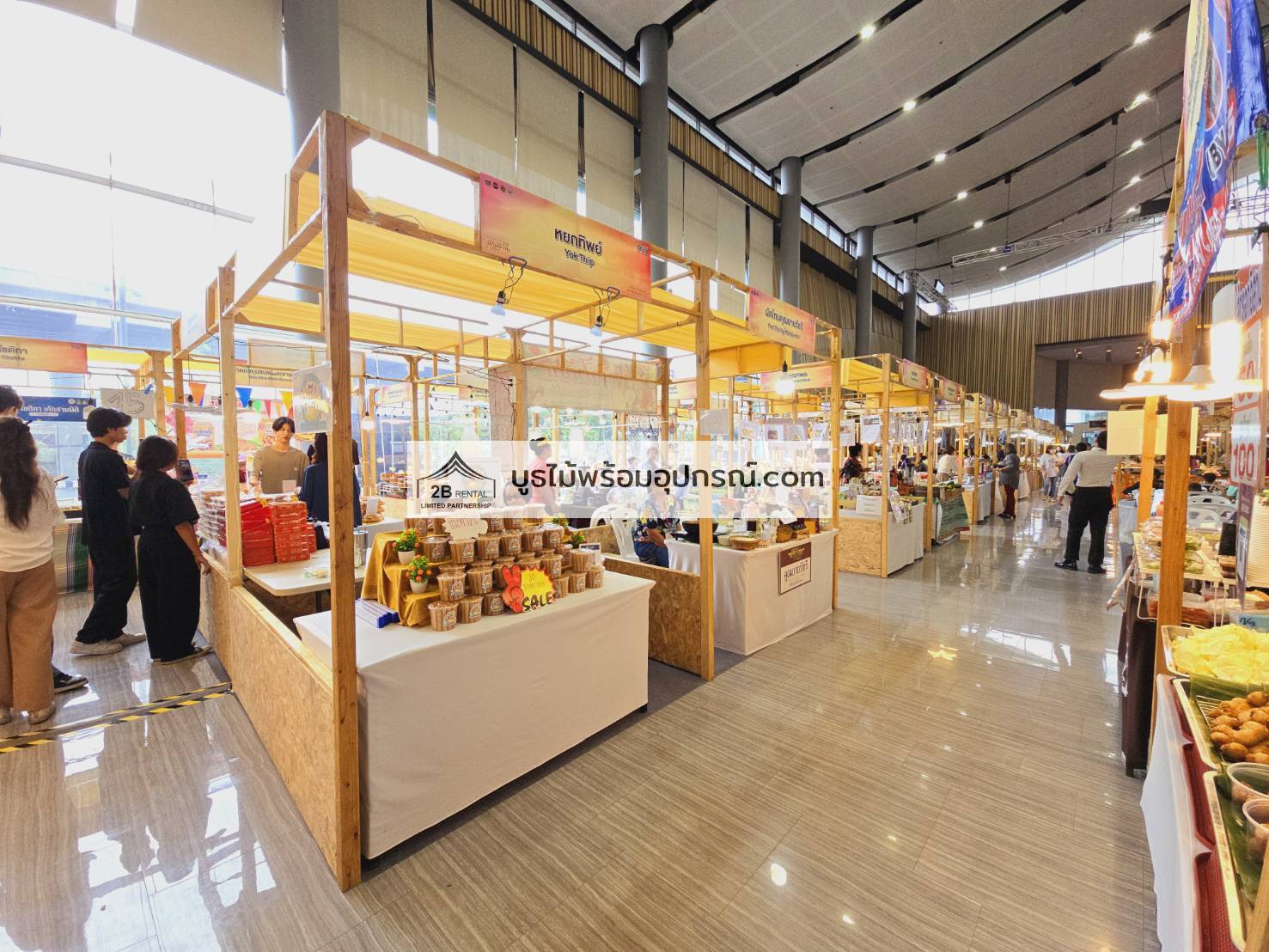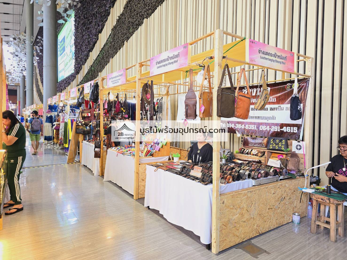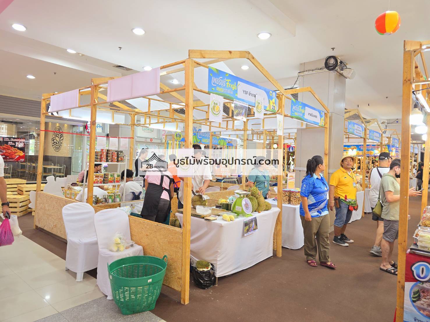 - บูธไม้ บูธพาร์ทิชั่นทุกขนาด พร้อมอุปกรณ์ภายในบูธ เช่นปลั๊กไฟ ไฟส่องสว่าง โต๊ะ เก้าอี้ ถังขยะฯลฯ
