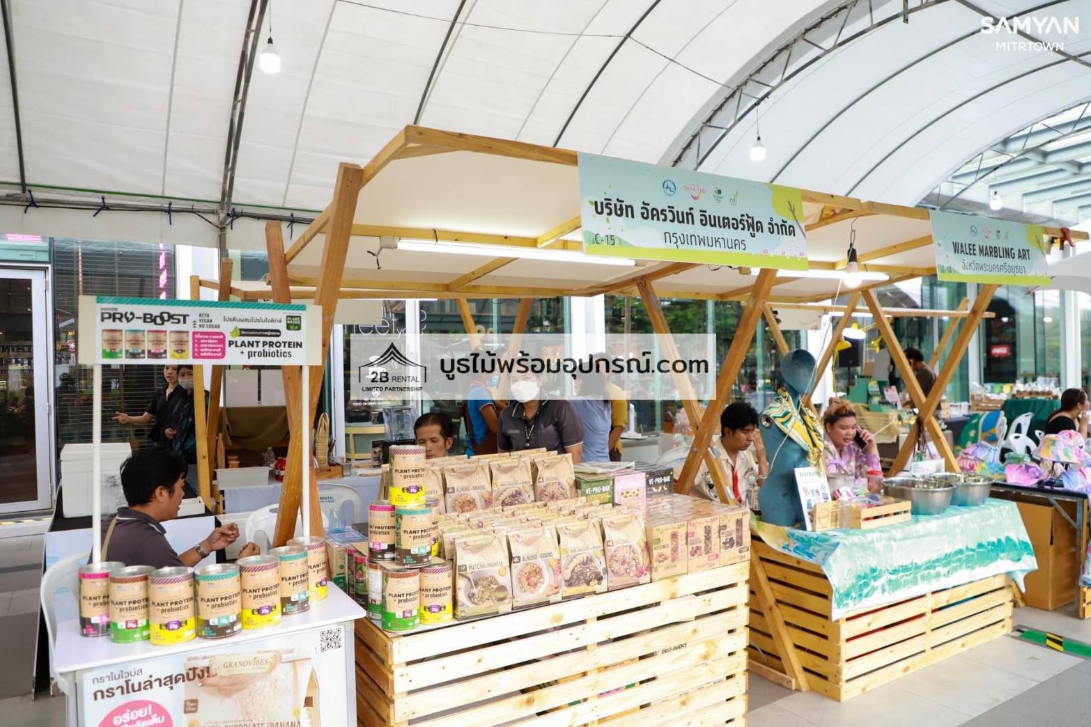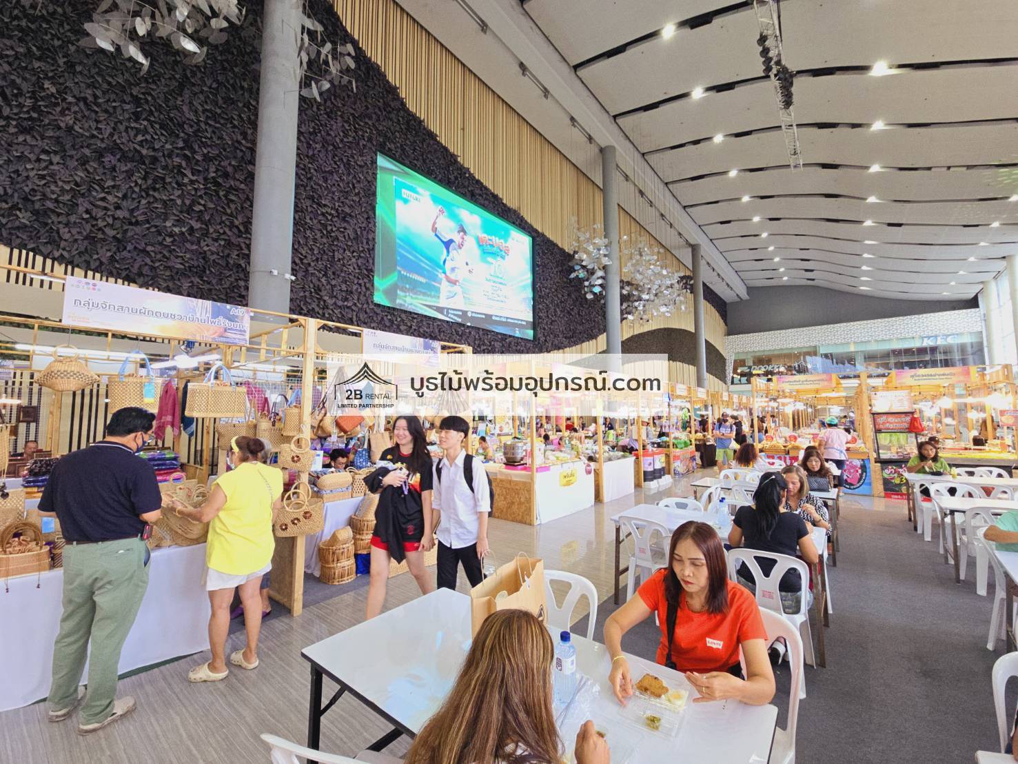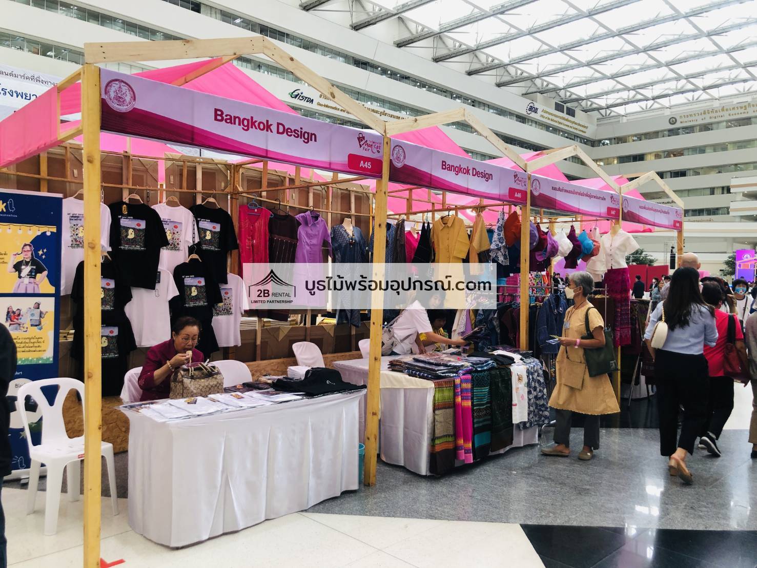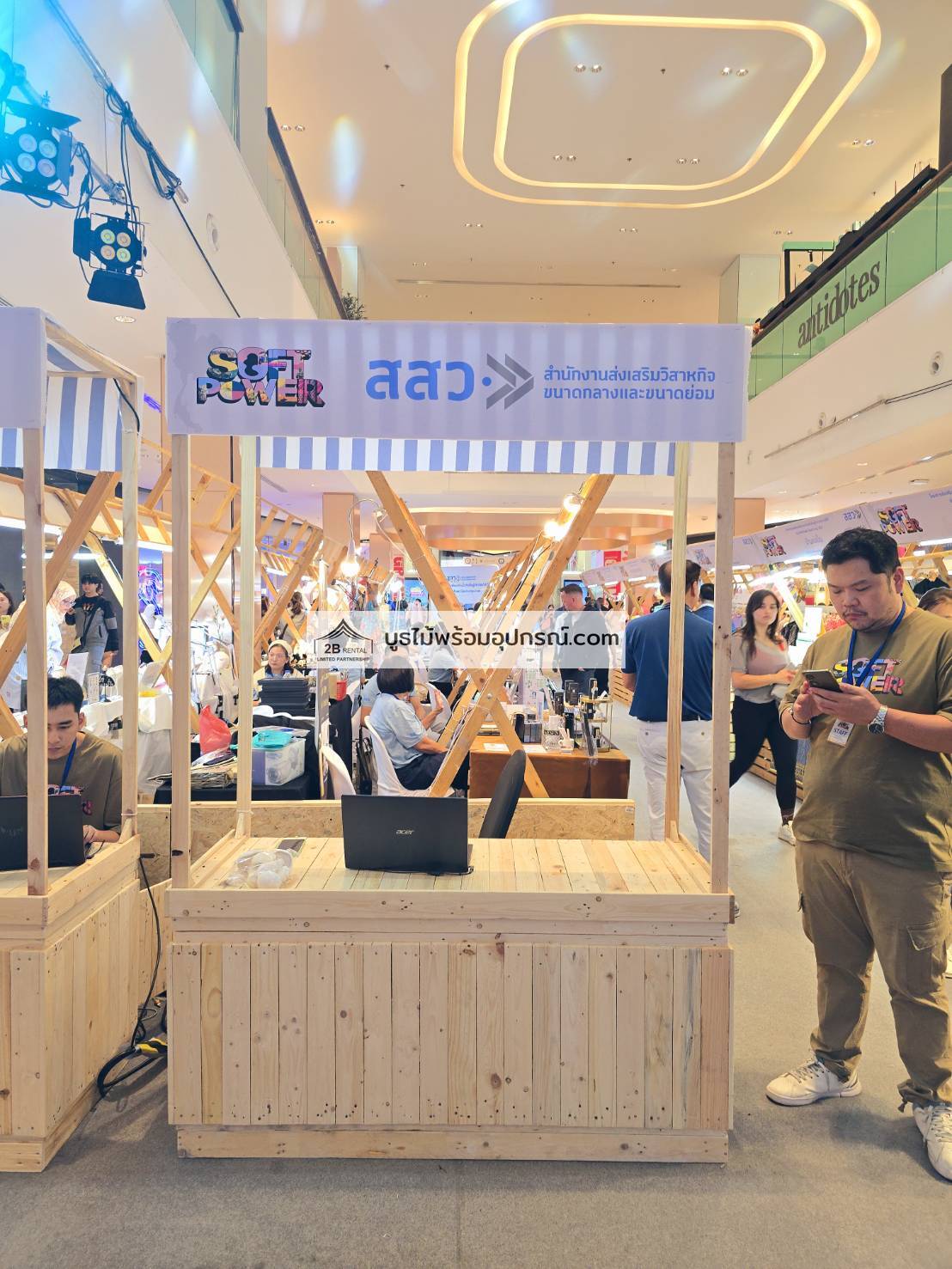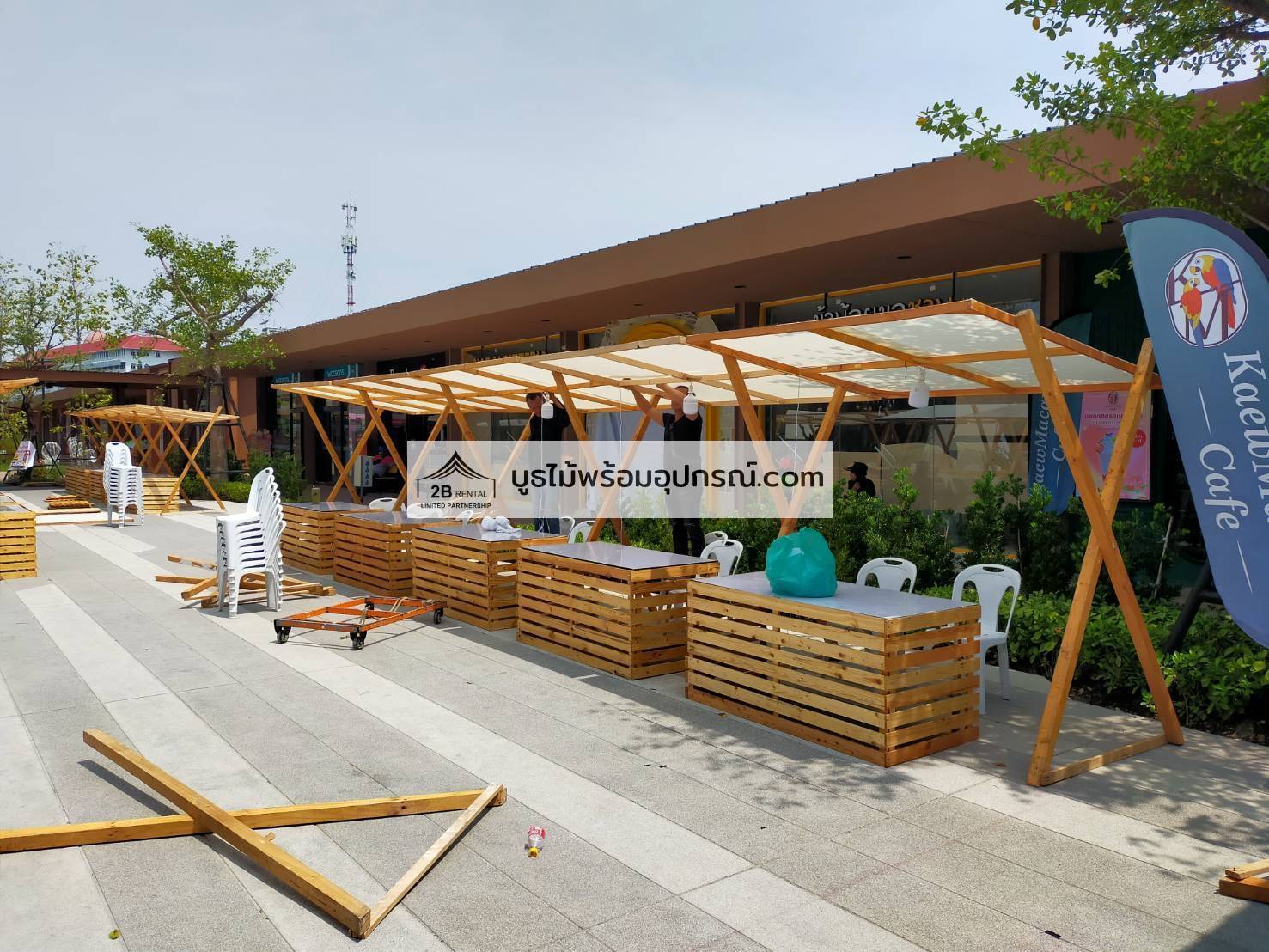 - บูธไม้ บูธพาร์ทิชั่นทุกขนาด พร้อมอุปกรณ์ภายในบูธ เช่นปลั๊กไฟ ไฟส่องสว่าง โต๊ะ เก้าอี้ ถังขยะฯลฯ