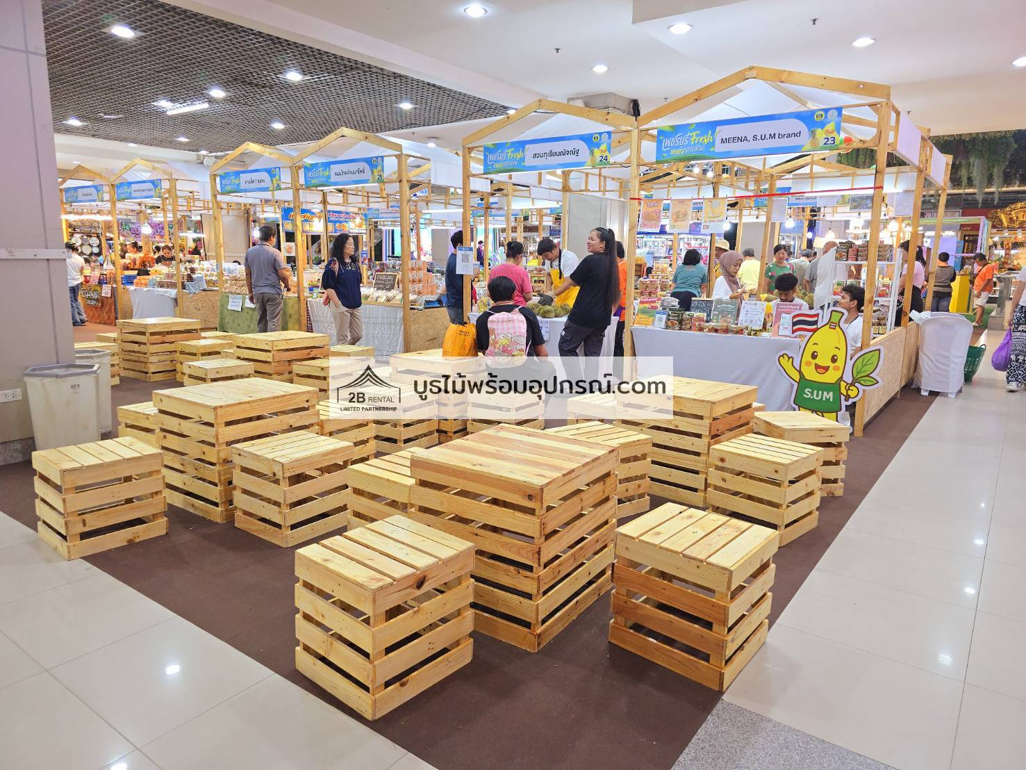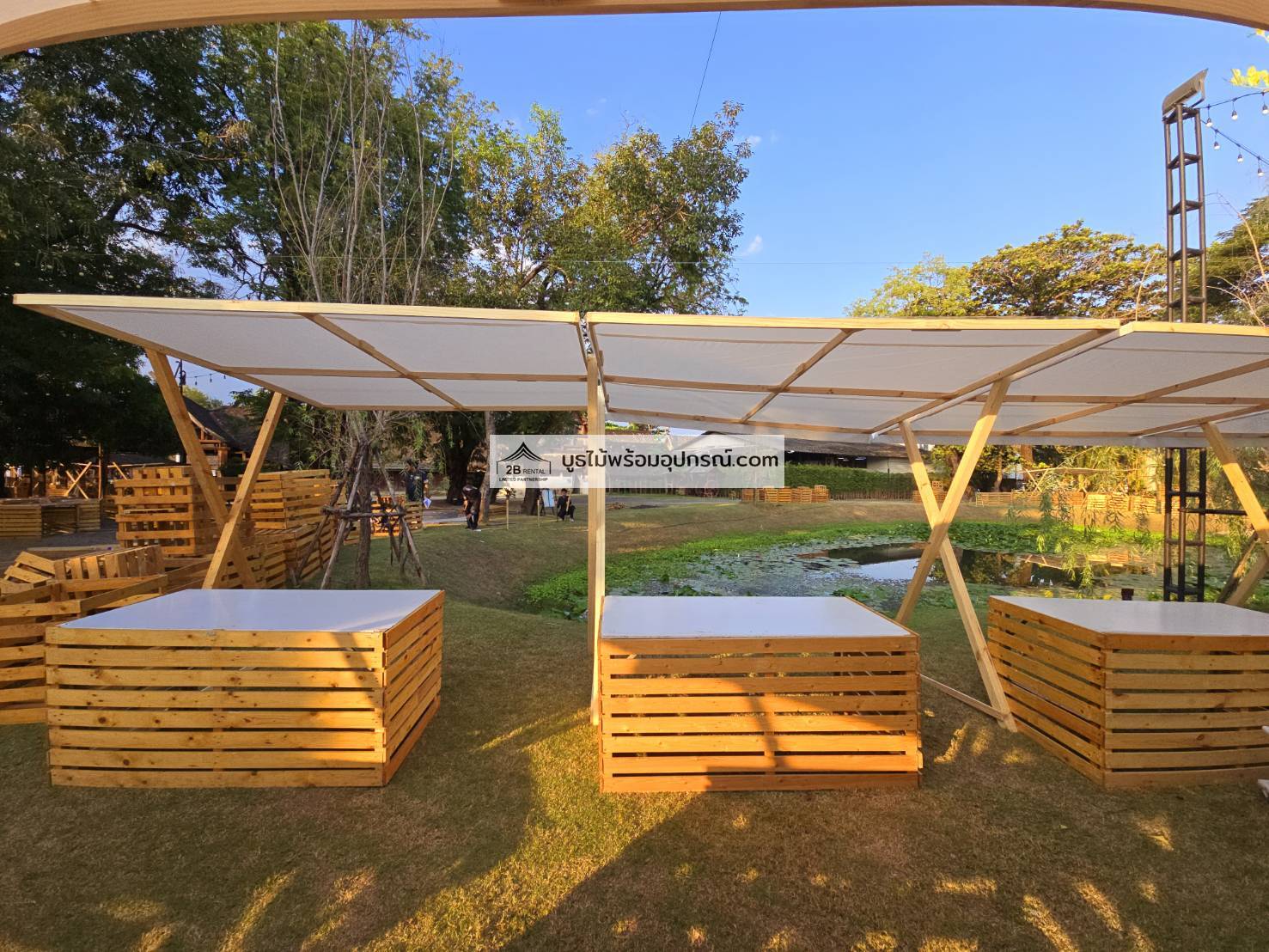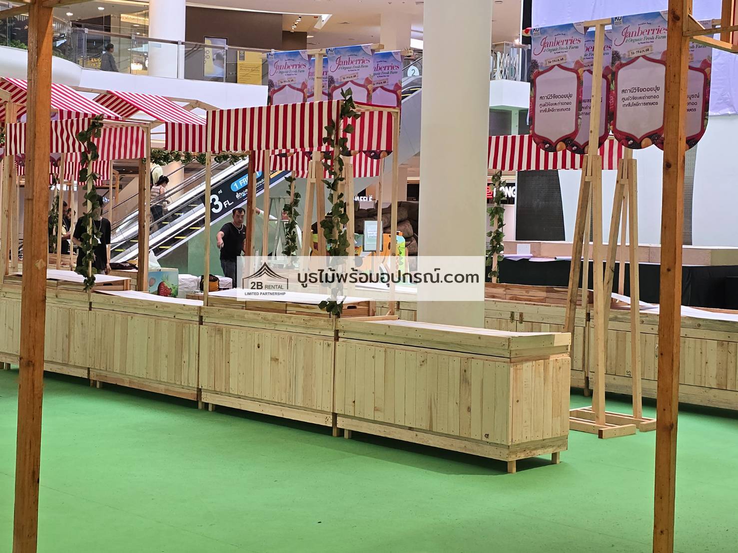 บูธไม้ เช่าบูธไม้ พร้อมอุปกรณ์ ระบบไฟ พรม เวที