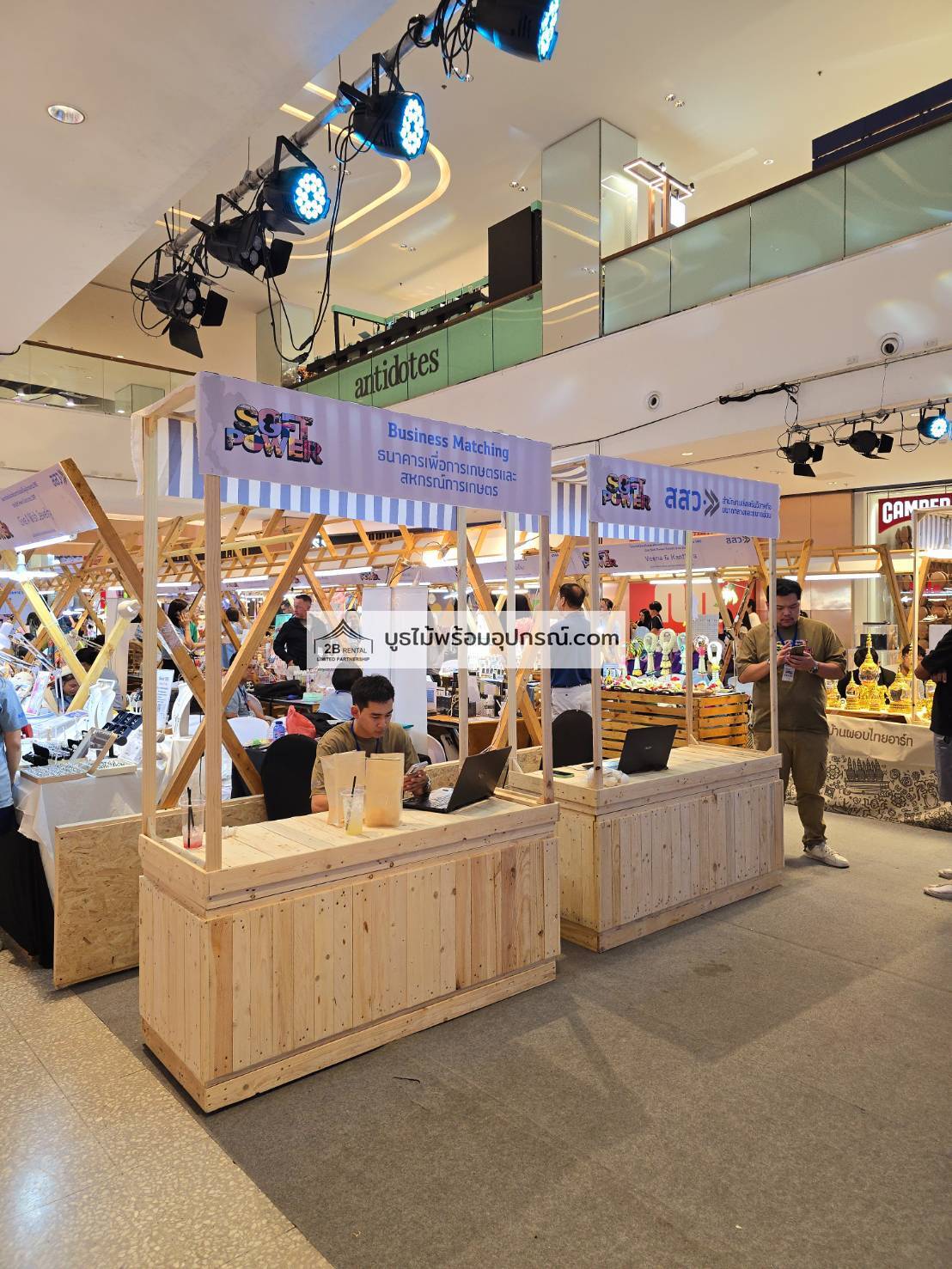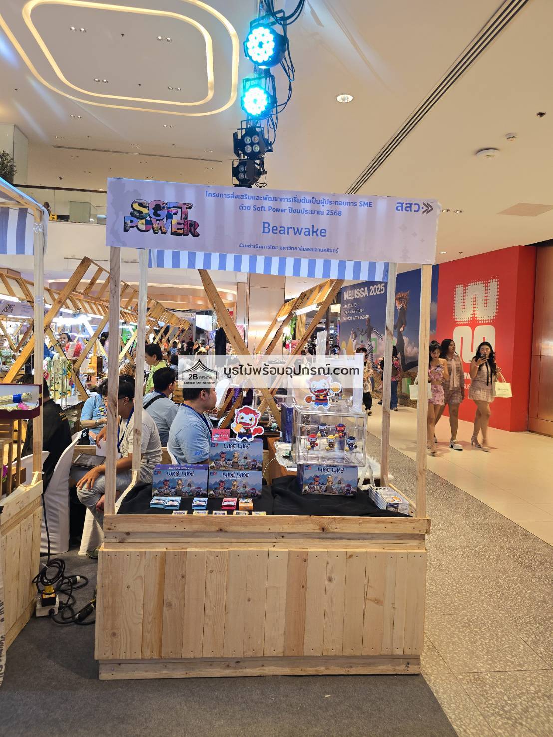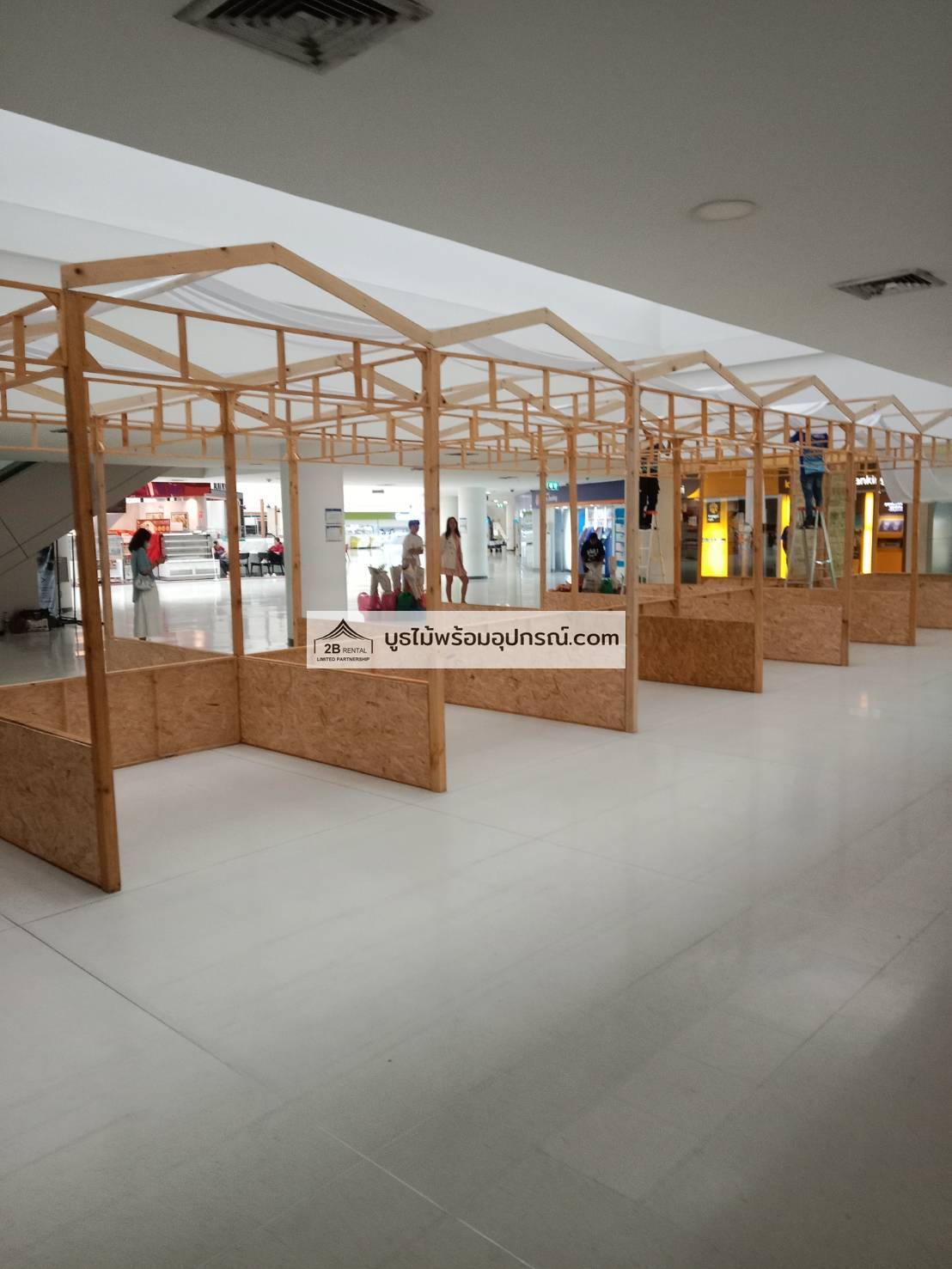 บูธไม้ เช่าบูธไม้ พร้อมอุปกรณ์ ระบบไฟ พรม เวที